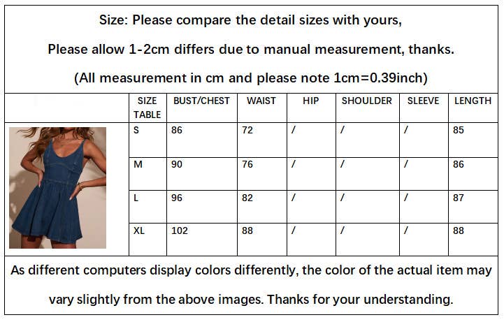 Design Details | Adjustable Spaghetti Straps, Solid Denim Wash, Mini Length