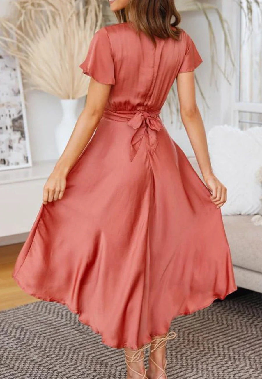 Summertime Magic Plunge Neck Twist Midi Dress